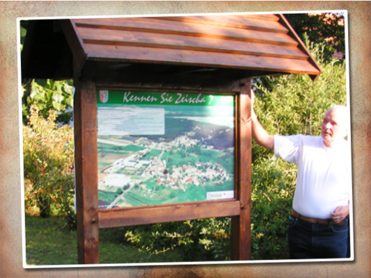 Einen kleinen Rundweg durch Zeischa startet man ab dem Glockenturm. In unmittelbarer Nähe zeigt eine Schautafel unter dem Titel „Kennen Sie Zeischa?“, eine kurze Darstellung der historischen Entwicklung und der prägnantesten Ortsangaben sowie eine bildliche Darstellung Zeischas um 1830/35. Folgt man dem etwa 1,5 km langen Rundweg weiter, so bekommt man eine Übersicht des Ortes mit Straßen- und Wegeführung, der Apotheke am Wegesrand und häufig vorkommenden Pflanzen und Tiere. Interessant auch eine Darstellung aus dem Jahr 1851 der noch nicht regulierten Schwarzen Elster. Sie zeigt, wie sich der Fluss um diese Zeit in den Ort und in die Umgebung eingefügt hat. Kurz hinter der Elsterbrücke in Richtung Zobersdorf ergänzen zwei weitere Aufsteller den Rundweg. Ganz in der Nähe auf einem Feld entdeckte im Jahr 2011 Ralf Uschner vom Kreismuseum Bad Liebenwerda Fundstücke, die auf die Existenz einer Harigsburg und somit den Gründungsort von Zeischa hinweisen.