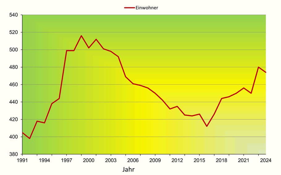 474 Einwohner gemeldeter Hauptwohnsitz, Stand September 2024